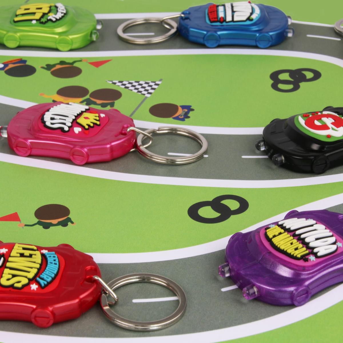 - Personalised racing car torch keyring.