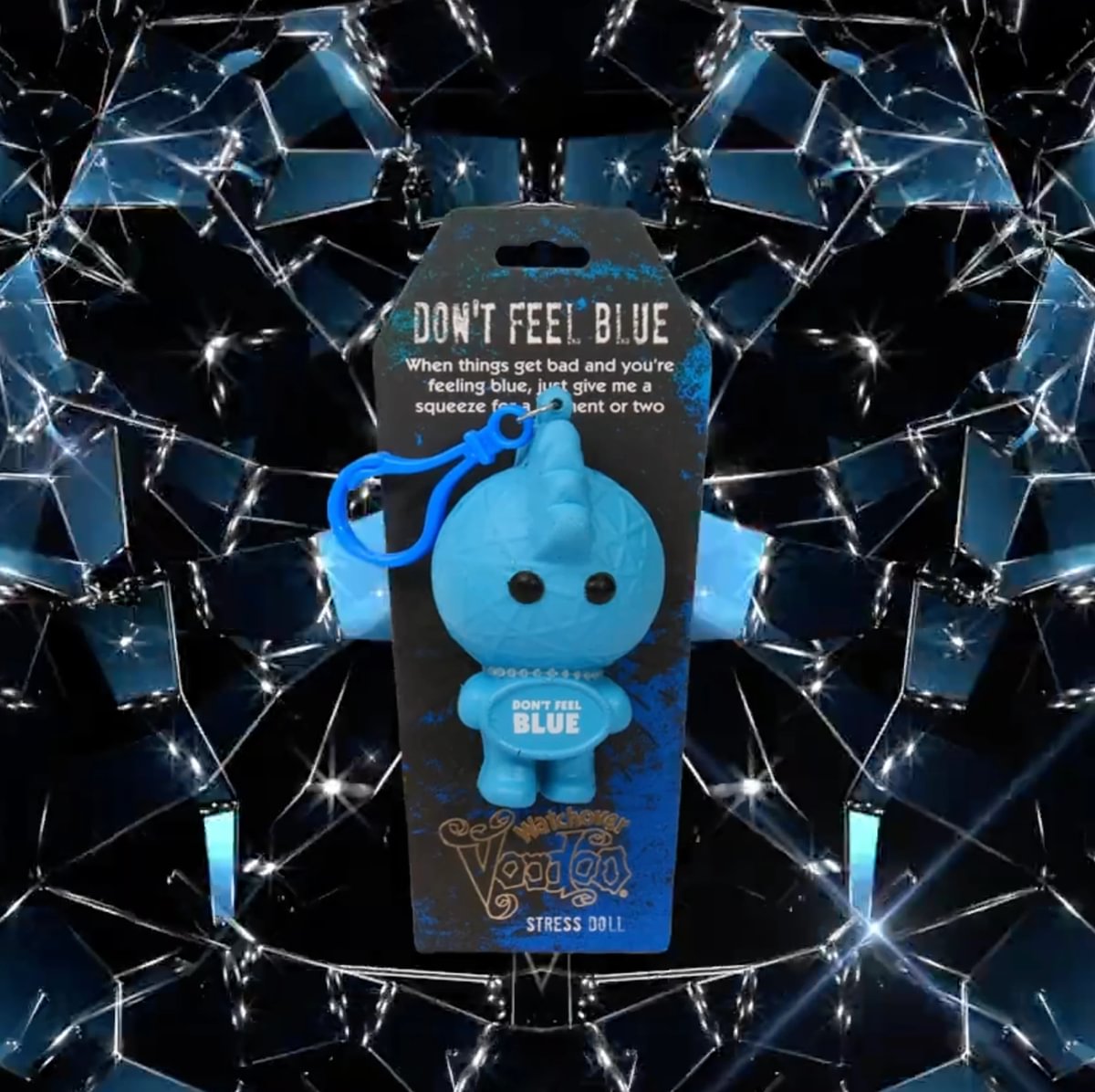 Soft and super-squishy voodoo stress doll. Take out your stresses and anxieties on this creepily collectable voodoo doll. Each bright and quirky character is made from a special material that springs back into shape after use. With a coloured lobster clip so it can be attached to school bags, backpacks or handbags.